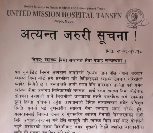 सोमबारदेखि मिसन अस्पतालले बिरामीलाई सुबिधा नदिने
