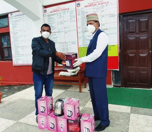 बाणिज्य संघ गुल्मीद्धारा आइसोलेसनलाई ९ थान पानी तताउने किट्ली