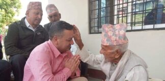 नगरप्रमुखका उमेदवार पन्थीद्वारा शताब्दी पुरुषसँग आशिर्वाद लिएर घरदैलो अभियान सुरु