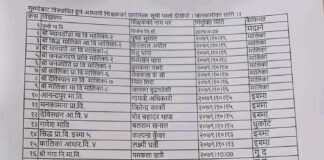 गुल्मीबाट विस्थापित हुने अस्थायी शिक्षकहरुको सुचि