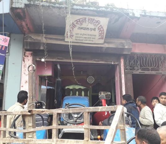 तम्घासको सडकमा गुडी रहेको ट्याक्टर पसलमा