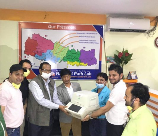 भैरहवामा अब दैनिक २ सय ५० कोरोना परिक्षण , नेशनल प्याथ ल्याबद्धारा कोरोना परिक्षण गर्ने मेसिन प्रदान