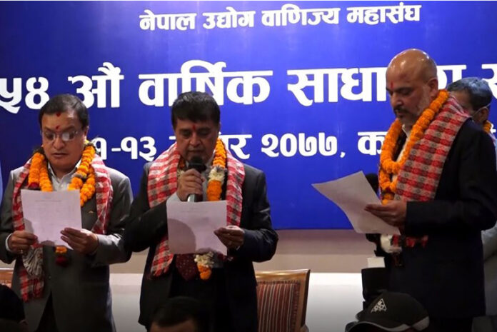 मंसिर १४,२०७७ काठमाडौं : नेपाल उद्योग वाणिज्य महासंघको कार्यसमितिमा नवनिर्वाचित पदाधिकारीहरुले पद तथा गोपनियताको शपथ ग्रहण गरेका छन्।