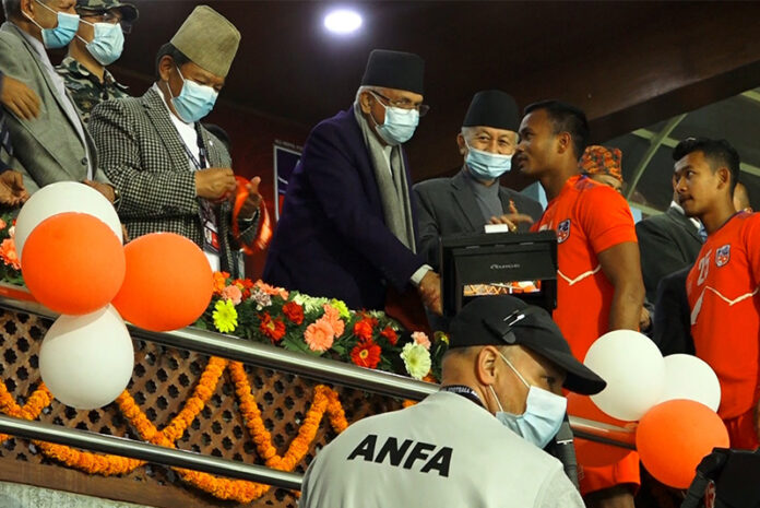 एएफसीले मैत्रीपूर्ण प्रतियोगिताको मान्यता दिएको खेलमा नेपालले फाइनलमा बंगलादेशलाई हराएर उपाधि जित्यो। सोही उपाधि जित्ने टोलीलाई सरकारले जनही ४ लाख रुपैयाँ पुरस्कार दिने घोषणा मन्त्रिपरिषद्को शुक्रबार बिहान बसेको बैठकले गरेको छ। प्रतियोगिताको फाइनल खेल हेर्न प्रधानमन्त्री केपी शर्मा ओली स्वयं दशरथ रंगशाला पुगेका थिए।