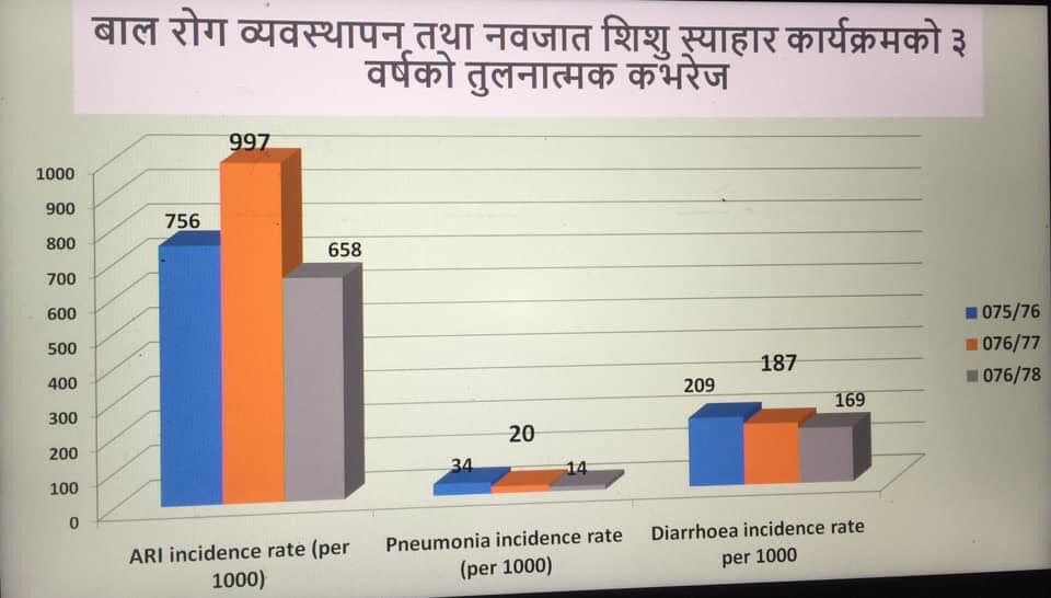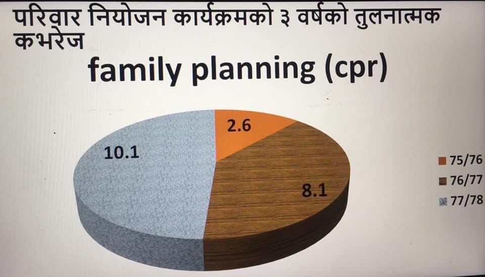 कार्यक्रममा स्वास्थ्य शाखा अन्तरगत रहेका ६ स्वास्थ्य चौकि र १ आधारभुत स्वास्थ्य केन्द्र को प्रगति प्रतिबेदन प्रश्तुत गरि समिक्षात्मक छलफल गर्दै समग्र पालिकाको प्रगति समेत प्रश्तुत गरिएको थियो ्र स्वास्थ्य शाखा प्रमुख नारायण प्रसाद अर्यालले गत आ ब को तुलना मा यस आ ब मा बाल स्वास्थ्य कार्यक्रम र परिवार स्वास्थ्य कार्यक्रम मा सफलता प्राप्त भएको बताए ।