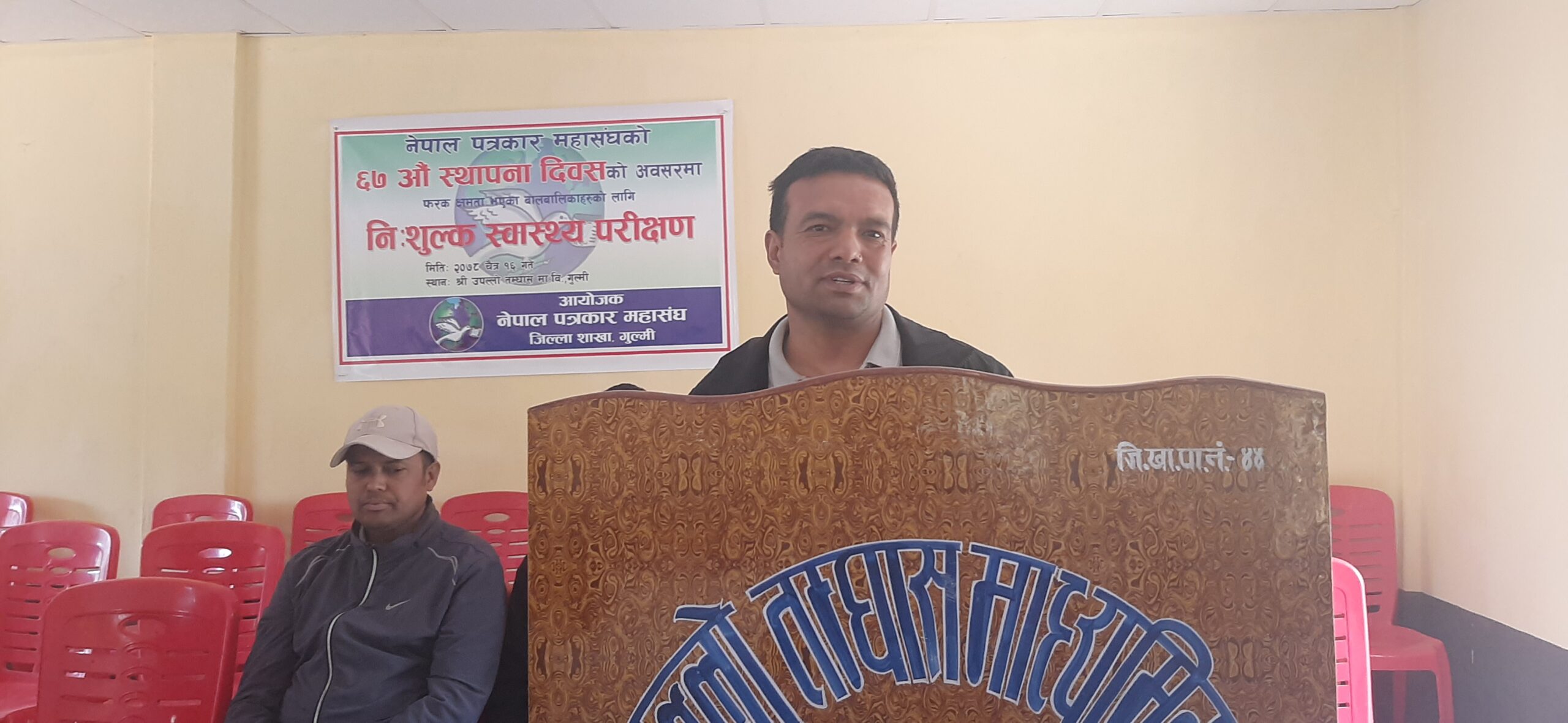 पत्रकार पेशा इमानदार र राम्रो पेशा भएपनि गाउँबाट सदरमुकाममा काेठा भाडामा बसेर पत्रकारिता गरेर काेठा भाडा तिर्न नसक्ने अवस्था रहेकोमा प्रमुख अतिथि नगरपालिकाका प्रमुख भुसालले दुख ब्यक्त गरे । स्थापना दिवसको अवसरमा सबै पत्रकार व्यवसायी बन्न सकुन् भन्दै उनले शुभकामना समेत दिए ।