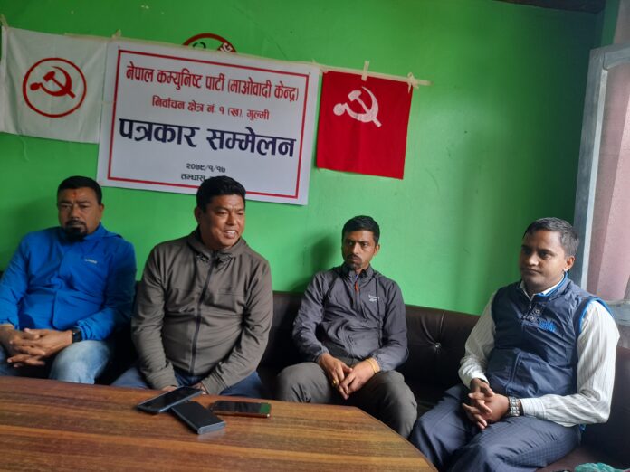 सन्तोष महतारा, १७ बैशाख / नेकपा माओवादी केन्द्र गुल्मीका नेता अशाेक थापाले आफ्नो उमेदवारी फिर्तापछि पत्रकार सम्मेलन गरेका छन् । रेसुङ्गा नगरपालिकाकाे उपप्रमुखमा उमेदवारी दिएका थापाले आफूले उमेदवारी फिर्ता लिएपछि पत्रकार सम्मेलन गरेका हुन् ।