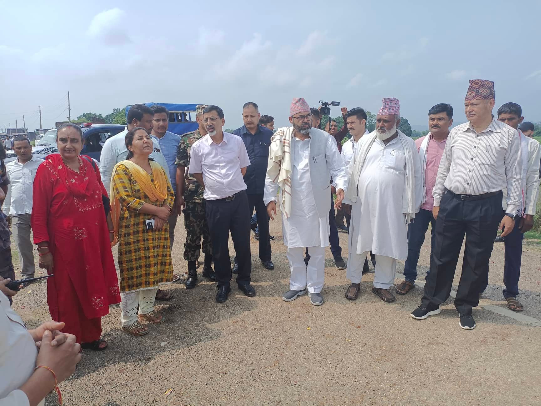 मन्त्री शर्मासंगै लुम्वीनी प्रदेशसभा सदस्य कृष्णा केसी नमुना, बाँकेका प्रमुख जिल्ला अधिकारी सुर्य बहादुर खत्री, बाँकेका प्रहरी प्रमुख एसपी श्याम कृष्ण अधिकारी, प्रमुख प्रशासकिय अधिकृत भरत बस्नेत, नरैनापुर १ का वडा अध्यक्ष इशाक जोहाल, २ का वडा अध्यक्ष महसुद अहमद शाह, ३ का वडा अध्यक्ष अजय मिश्रा, ४ का वडा अध्यक्ष मनोज शर्मा, ५ का वडा अध्यक्ष कृष्ण मौर्य लगायतको टोलीले नेपाल भारतको सिमासम्म स्थलगत निरिक्षण पनि गरेको थियो ।