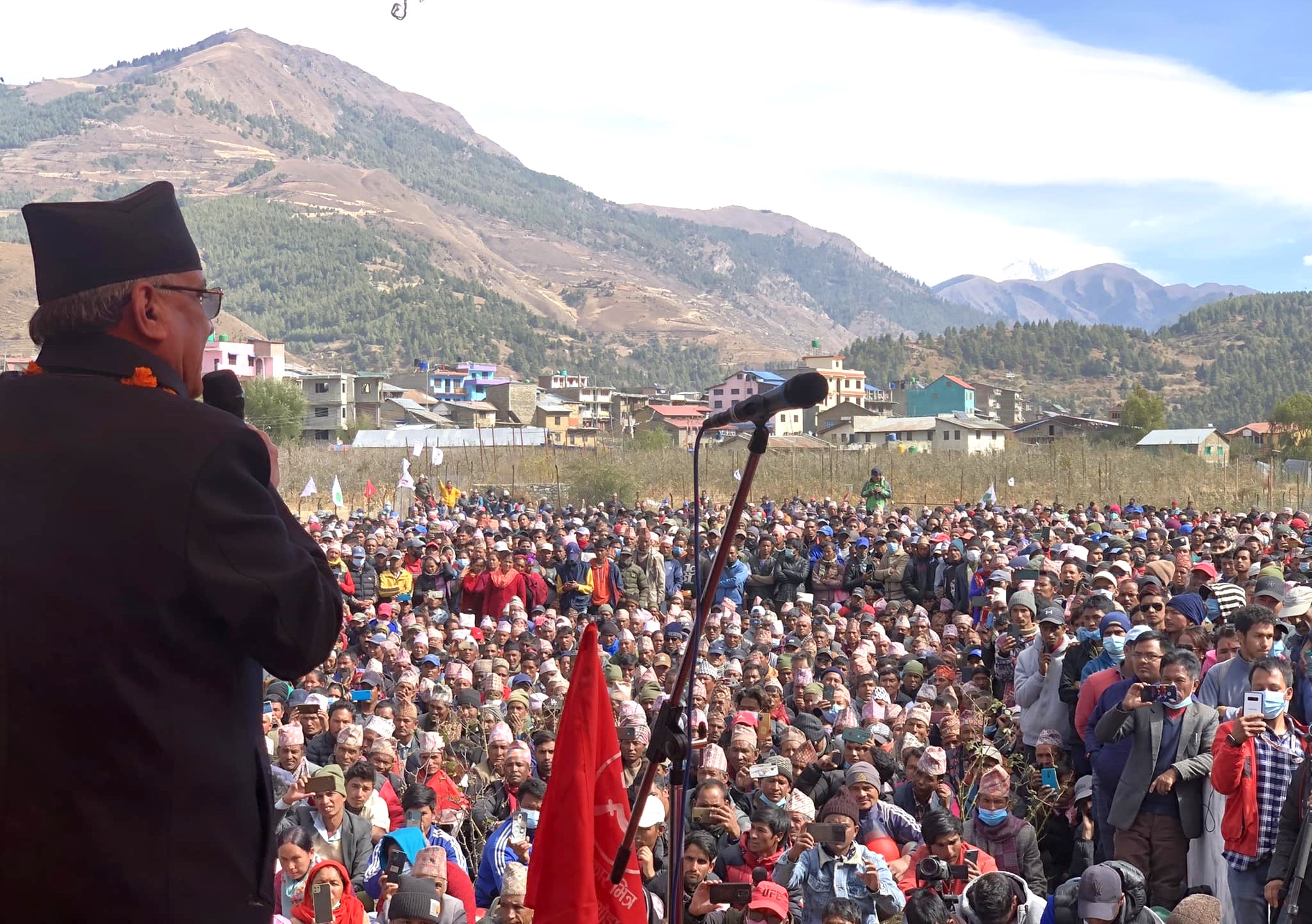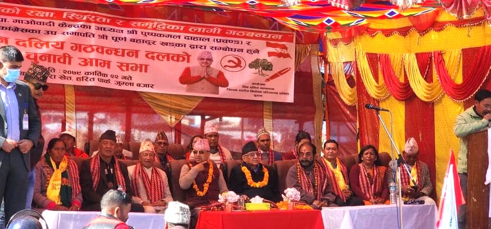 मंगलबार जुम्लामा आयोजित चुनावी सभालाई सम्बोधन गर्दै अध्यक्ष प्रचण्डले प्रतिगमनकारी, निरंकुशतावादी र सामन्तवादीलाई शून्य बनाएर कर्णालीबासीले रेकर्ड राख्नुपर्ने बताउनु भएको हो।