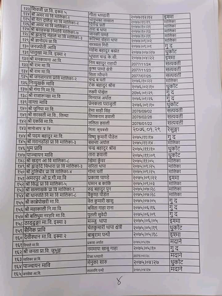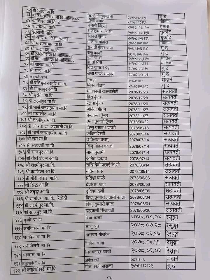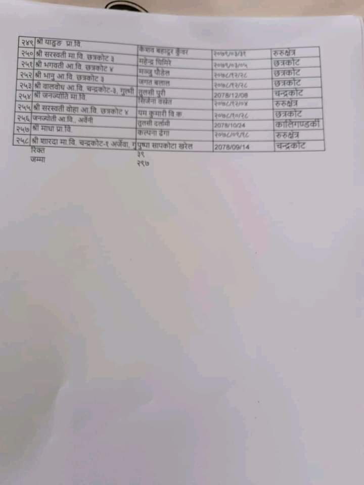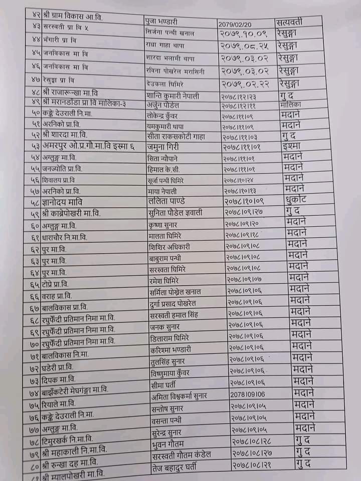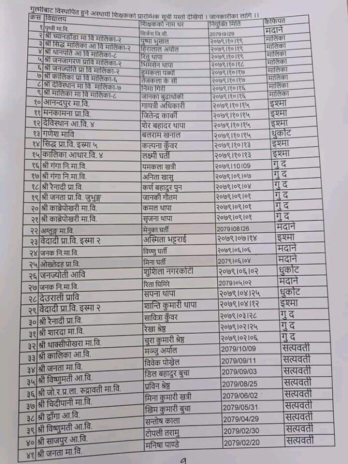 गुल्मीबाट विस्थापित हुने अस्थायी शिक्षकहरुको सुचि By खबर मार्केट - ३ वर्ष अगाडि 0 247 गुल्मी चैत ७,२०७९:गुल्मीबाट विस्थापित हुने अस्थायी शिक्षकहरुको सुचि