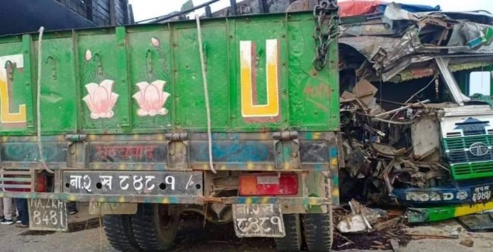 बुटवल: रूपन्देहीमा भएको दुर्घटनामा परी ३ जनाको मृत्यु भएको छ । भैरहवाबाट परासीतर्फ जाँदै गरेको र परासीबाट भैरहवा जाँदै गरेका ३ ट्रक अनियन्त्रित भई एकापसमा ठोक्किदा ३ जनाको घटनास्थलमै ज्यान गएको छ । भैरहवा -परासी सडकमा रुपन्देहीको रोहिणी गाँउपालिकामा पर्ने ४ छिपागढमा ३ वटा ट्रक एक आपसमा ठोक्किदा ३ जनाको घटनास्थलमै ज्यान गएको र ९ जना घाइते भएका जिल्ला प्रहरी कार्यालय रुपन्देहीले जनाएको छ । बिहान हुस्सु लागेको बेला अत्याधिक गतिमा रहेका ट्रकहरु ठोक्किएका हुन । भैरहवादेखि परासी तर्फ जाँदै गरेको लु १ ख ६७४५ नम्बरको ट्रक, परासीदेखि भैरहवा तर्फ आउँदै गरेको ना २ ख ८४८१ र ना ५ ख ७८५६ नम्बरको ट्रक एक आपसमा ठोक्किएका हुन् । दुर्घटनामा मृत्यु भएकाहरूको सनाखत भएको छैन । घाइते मध्ये ४ जनाको अवस्था गम्भिर छ भने अन्य ५ जना पनि घाइते भएका छन् । घाइतेलाई भैरहवा स्थित भिम अस्पताल र युनिभर्सल मेडिकल कलेज पठाईएको छ ।