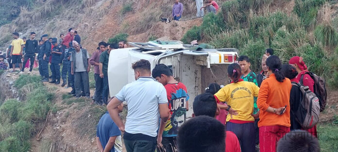 घाइते मध्य वर्षा केसीको बायाँ खुट्टाको तिघ्राको हड्डी निस्किएकोले अवस्था सिरियस रहेको बताइएको छ । प्रहरीका अनुसार उक्त जिपमा १२ जना सवार रहेकोमा अन्य दुई जना सकुशल रहेका छन् । जिप स्टाट गर्ने क्रममा ब्रेकले काम नगरी ब्याक हुन जाँदा सडकबाट करिब ६ मिटर तल खसेको प्रहरीले