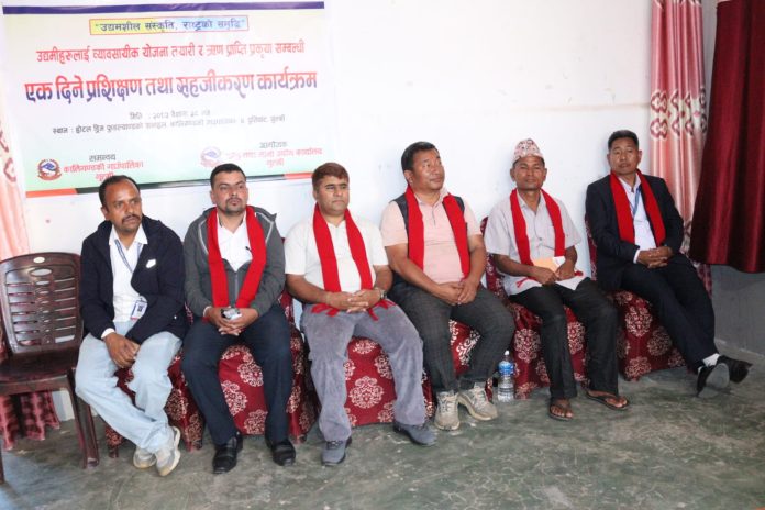 घरेलु तथा साना उद्योग कार्यालय गुल्मीको आयोजना तथा कालीगण्डकी गाउँपालिकाको समन्वयमा कार्यक्रम गरिएको हो । कार्यक्रममा कार्यालय प्रमुख राजीव अर्यालको अध्यक्षतामा गाउँपालिकाका अध्यक्ष वेद बहादुर थापा मगर प्रमुख अतिथि रहनुभएको थियो।