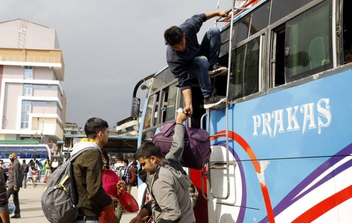 सरकारले पर्सि सोमबारदेखि लामो दुरीका सार्वजनिक यातायात सञ्चालनमा रोक लगाएपछि काठमाडौंबाट बाहिरिने यात्रुको चाप बढेको हो। यात्रुलाई सहज र सुरक्षित रुपमा गन्त्ब्यमा पुर्याउनका लागि आवश्यक व्यवस्थापन गर्न सरकार र यातायात व्यवसायीबचि आज बैठक पनि हुँदैछ। विहान ११ बजे यातायात व्यवसायीसँग छलफल गर्न लागिएको यातायात व्यवस्था विभागका महानिर्देशक गोगनबहादुर हमालले जानकारी दिए।
