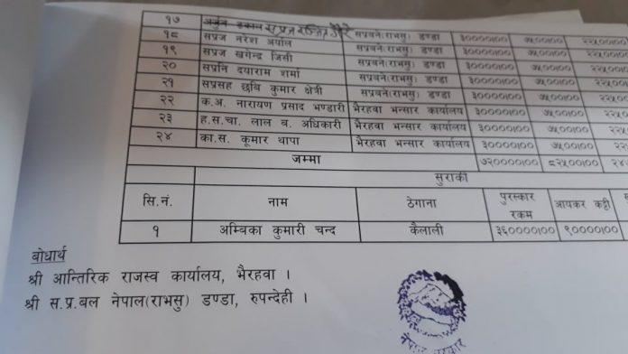 यसै गरी फाल्गुन ११ गते ७ हजार ५ सय ७५, चैत्र १६ गते ५ हजार ६ सय ८१ रुपैया, कार्त्तिक २१ गते ४ हजार ८ सय ९४ रुपैया सुराकी लाई पुरस्कार स्वरूप प्रदान गरिएको छ । यी सबै घटनामा डी एस पी शाहीकी श्रीमती अम्बिका कुमारी चन्दलाई सुराकी बनाइएको छ ।