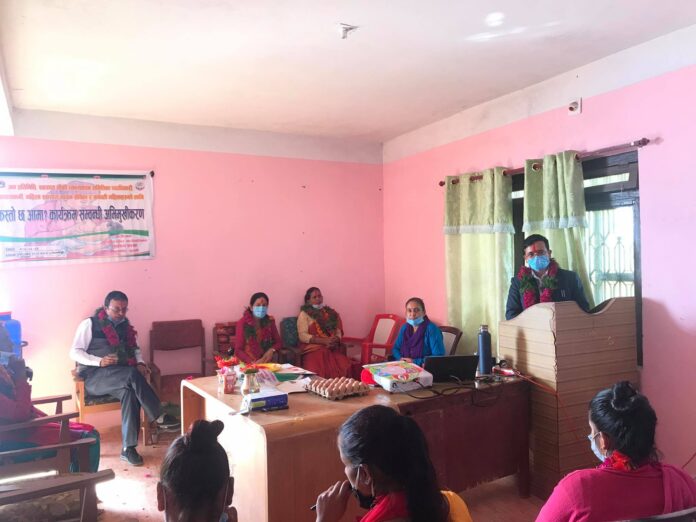असोज २१ गतेबाट गाउपालिका का ७ वटै वडाका जनप्रतिनिधि¸ स्वास्थ्य चौकी व्यवस्थापन समितिका पदाधिकारी¸ स्वास्थ्यकर्मी¸महिला स्वास्थ्य स्वयंसेवीका र १०९ जना गर्भवती महिलाहरु र उनिहरुका सासुआमाहरु लगायतका लागि अभिमुखीकरण कार्यक्रम आयोजना गरी कार्यक्रम सम्पन्न गरिएको छ ।