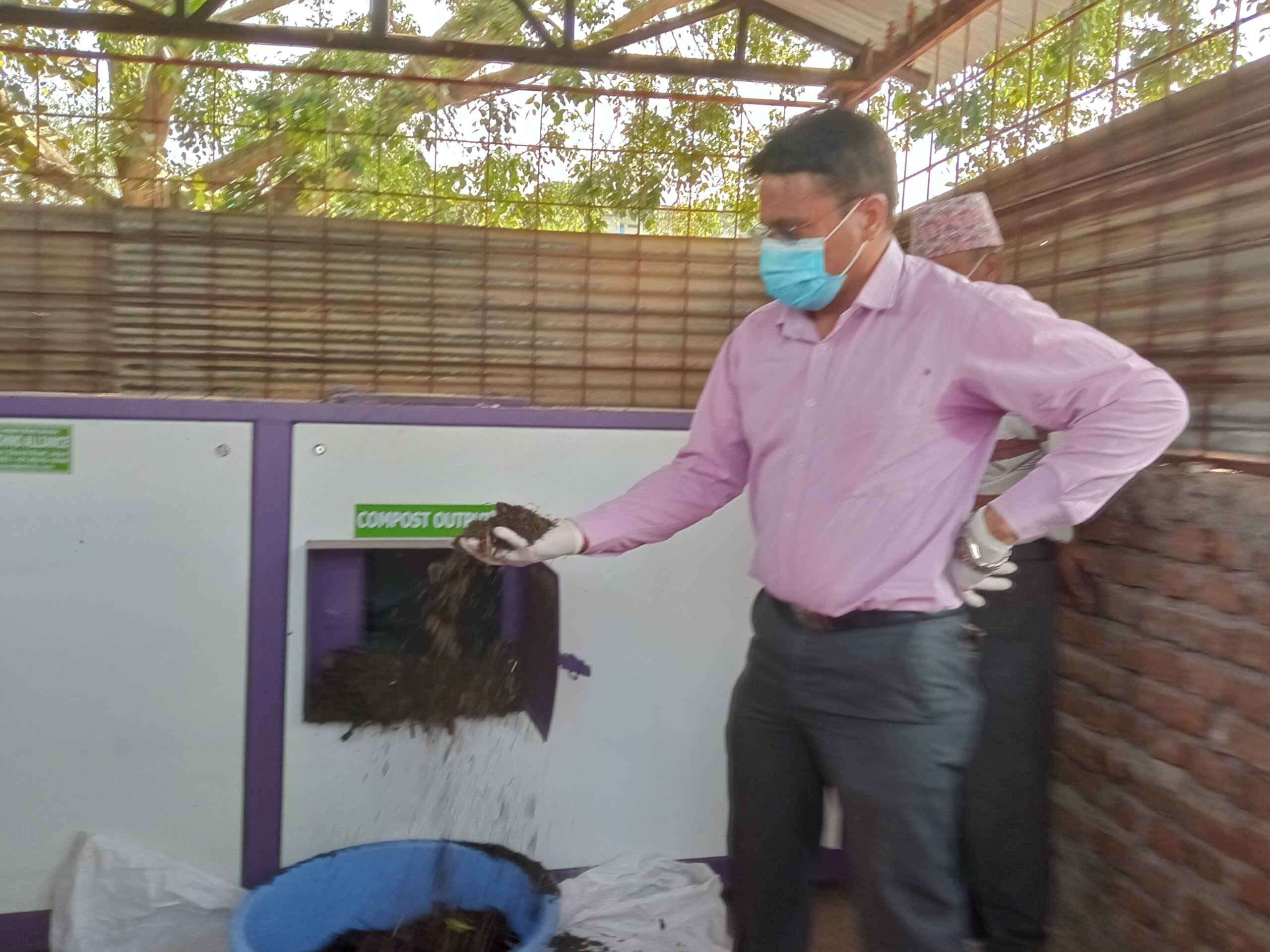 मेसिनबाट उत्पादन गरिएको मल परिक्षणका लागि रामपुर नगरपालिकाले निर्माण गरेको उच्च प्रबिधिको तरकारी टनेल (हाईटेक टनेल) मा प्रयोग गर्ने नगर प्रमुख थापाले बताए ।